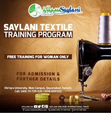Donated Machines for Welfare Projects: General Sewing Machine provides machines at subsidized rates (or through donations) for Saylani's uplift programs.